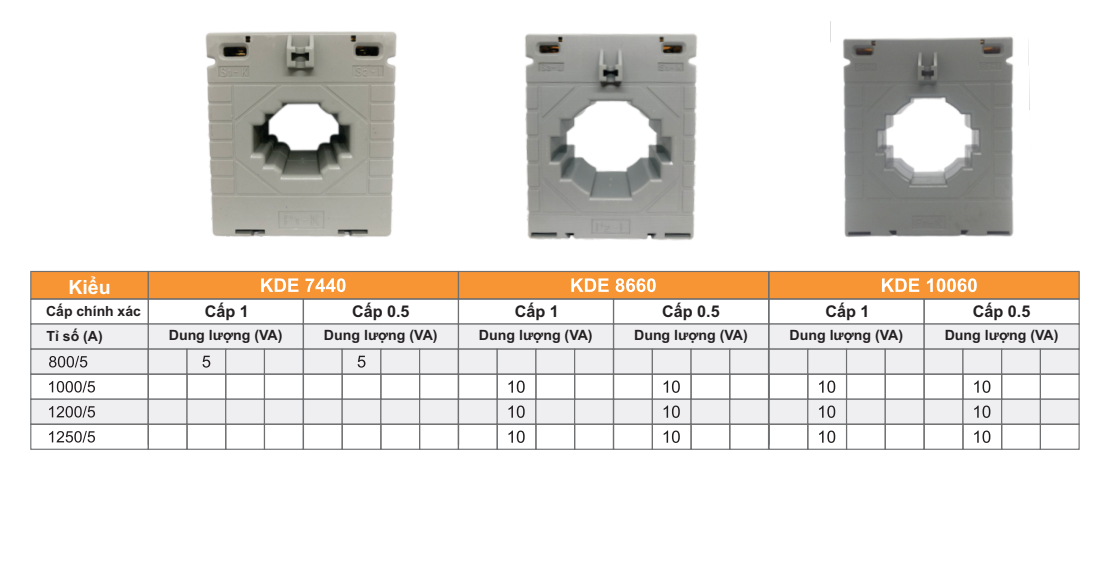 Máy biến dòng KDE kiểu vuông 1, kiểu vuông 2 và kiểu tròn là loại siêu nhỏ nó nhỏ hơn những loại biến dòng nhỏ khác. Phần vỏ bao bọc cực nối thứ cấp được phủ kín bởi các kẹp nhựa. Với các phụ kiện đi kèm người sử dụng có thể dễ dàng lắp đặt trên thanh rail, thanh cái hoặc panel với kiểu , với kiểu 2 thì dễ dàng lắp thanh cái, lắp lên panel với kiểu tròn thì lắp được lên panel.