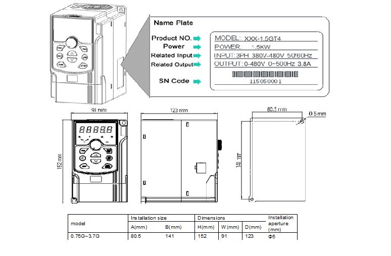 Điện áp vào: 3P 380 – 480 VAC 50/60Hz, điện áp ra: 3P 380 – 480 VAC