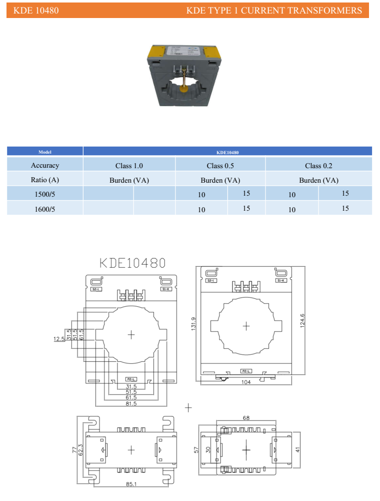 Biến dòng đo lường vuông KDE10480-1500/5-0.5-10 – Sản xuất tại VIỆT NAM