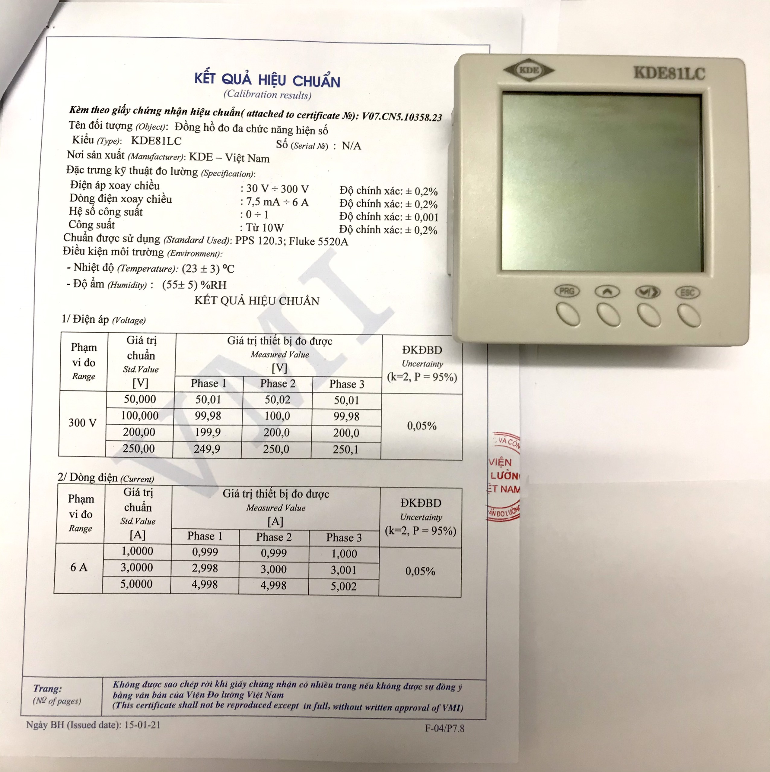 KẾT QUẢ HIỆU CHUẨN TỪ VMI