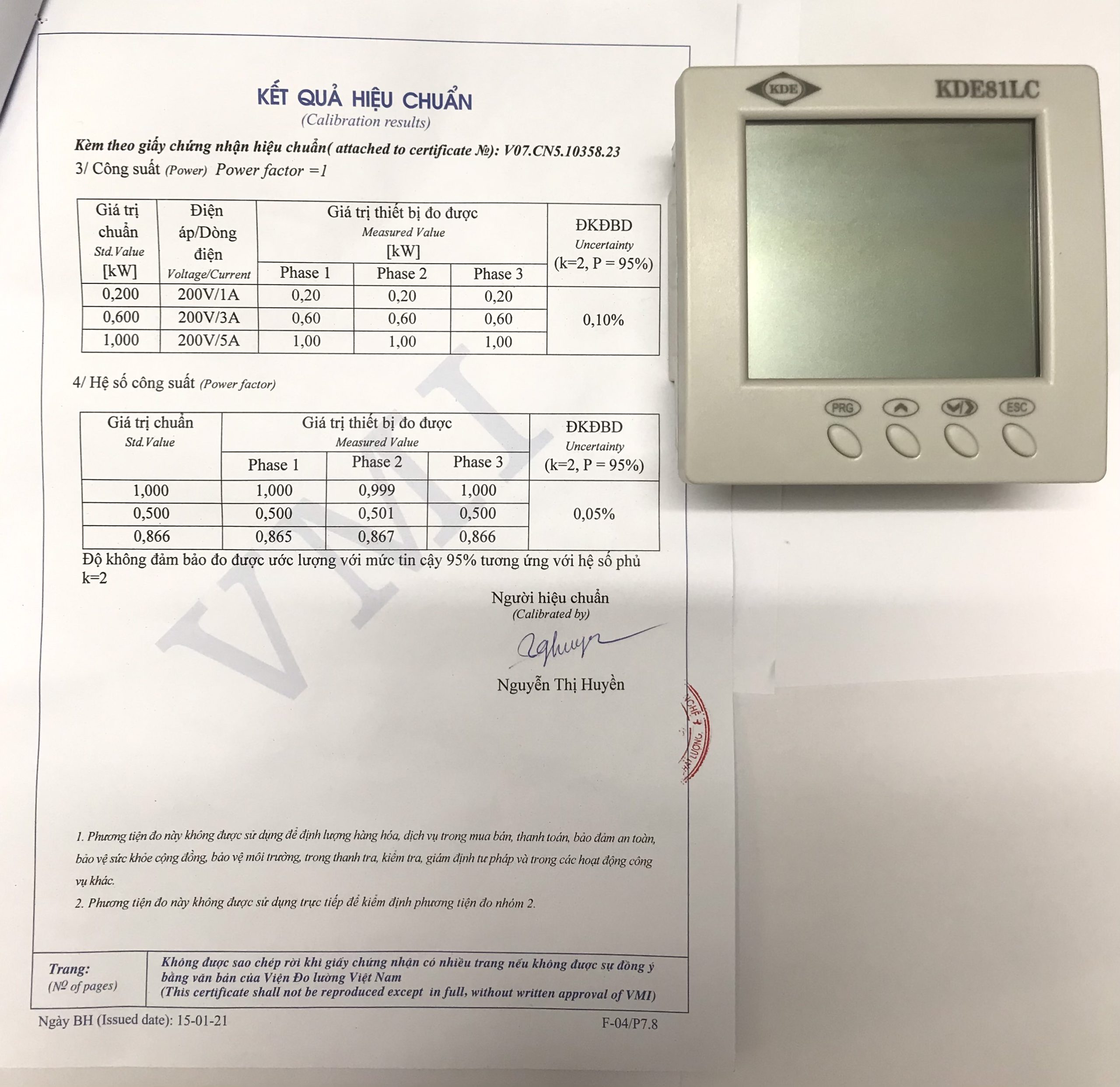 Trong Tháng 3 công ty Phúc Huy Hoàng đã thực hiện công việc chọn ngẫu nhiên trong kho nhà máy thiết bị đồng hồ đo đa chức năng hiện số KDE81LC mang đến Viện đo lường Việt Nam số 8 Hoàng Quốc Việt để thực hiện việc hiệu chuẩn, kiểm tra các chức năng và thông số kỹ thuật của thiết bị ,với mong muốn chứng minh rằng đồng hồ KDE81LC đáp ứng được các yêu cầu kỹ thuật của các đơn vị sử dụng cũng như đáp ứng được các tiêu chí sản xuất của Phòng Kỹ Thuật R&D của nhà máy công ty cổ phần điện tự động hoá Phúc Huy Hoàng.