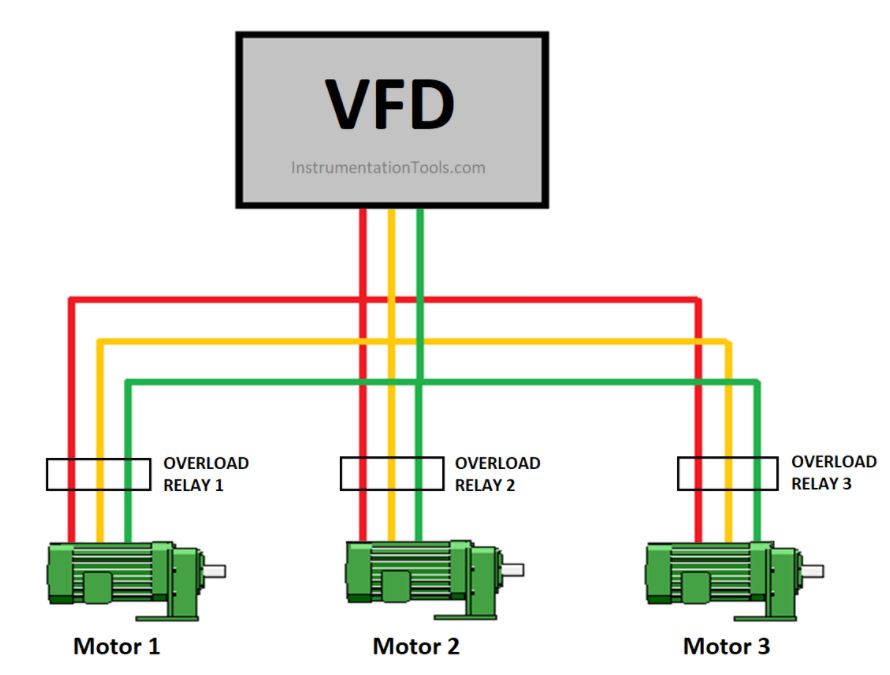Như chúng ta đã biết, biến tần có tốc độ thay đổi, và bây giờ, nếu chúng ta kết nối nhiều động cơ ; thì tất cả các động cơ phải chạy cùng một tốc độ tại một thời điểm. Điều này đòi hỏi sự hiểu biết về hoạt động của hệ thống.